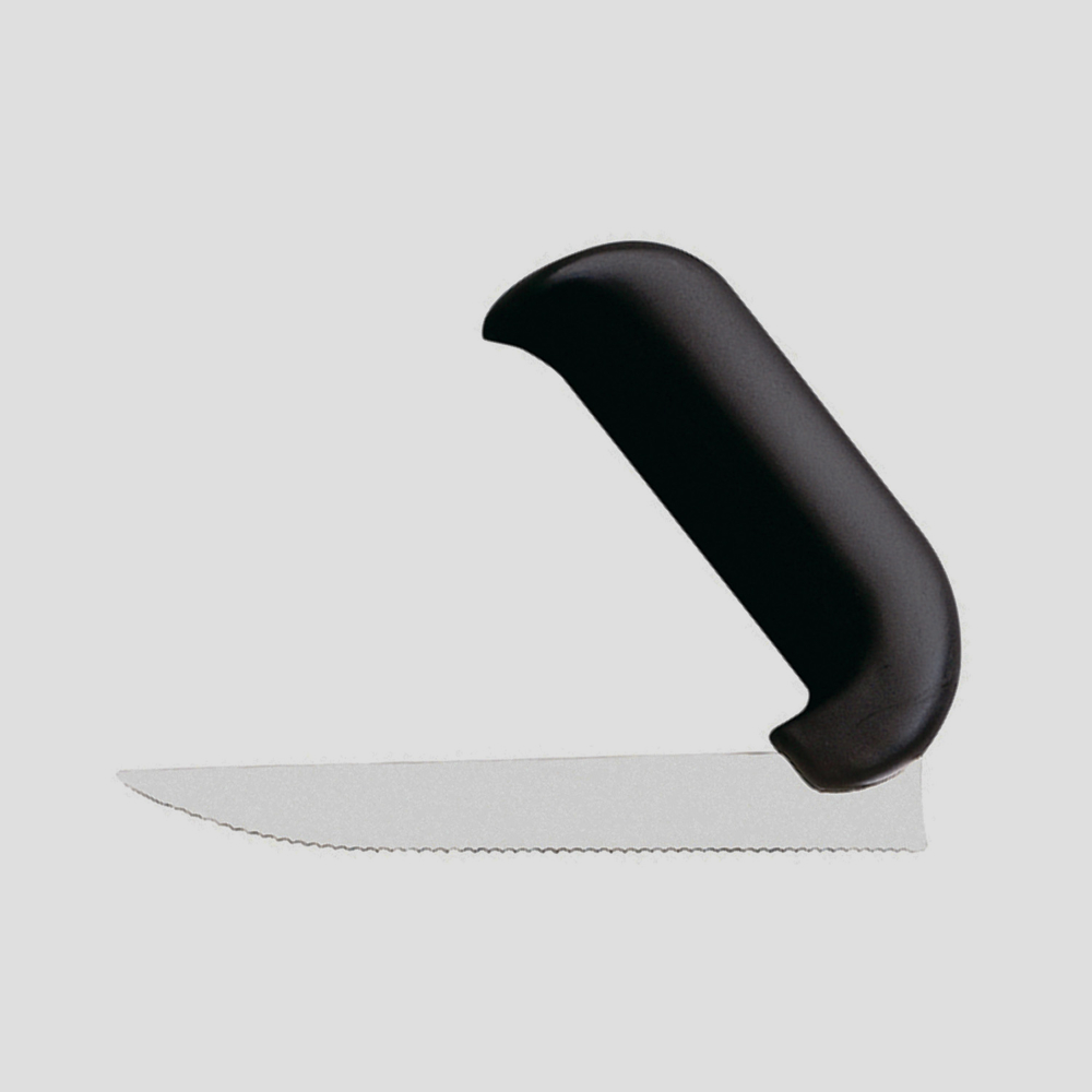 • Etac Relief knive har et vinklet håndtag og en skarp kant, der letter skæringen.