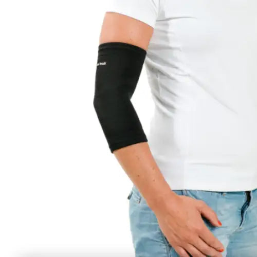 Albuestøtte til dem, der har albuesmerter og lider af tennisalbue, musealbue eller golfalbue. Det elastiske materiale i 2-vejs stretch giver ekstra støtte til albuen og gør den behagelig at bruge både under hvile og træning.