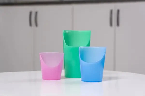 Næsekopperne har forskellige farver alt efter størrelsen og er lavet af blød plast.