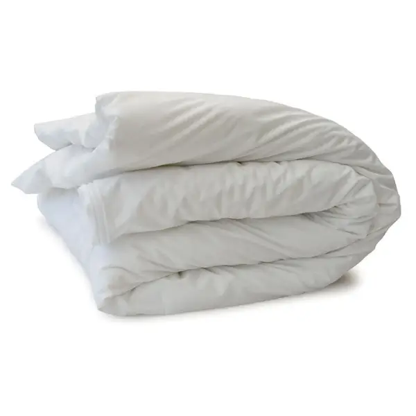 Peitto mukavaa valkoista trikoota, jossa hengittävä nestesuoja. Suojaa peittoja ja peittoja.