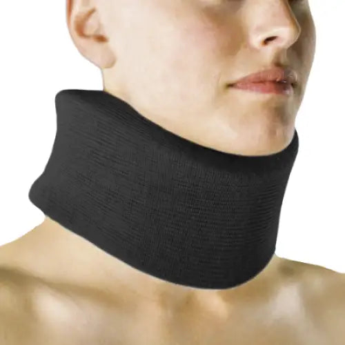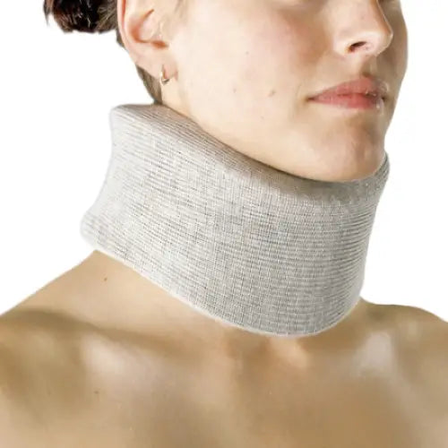 Vaahtomuovi kaulakaulus, jossa tarrakiinnitys takana ja hieman kapeneva leuka.