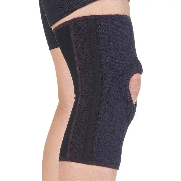 Denna modell är avsedd för användning vid lindrigare smärttillstånd i knä. Materialet ger en mild kompression och värme. Patella öppningen är anatomiskt formad för optimal passform. Runt patella öppningen ligger en mjuk polstring för ökad stabilisering.