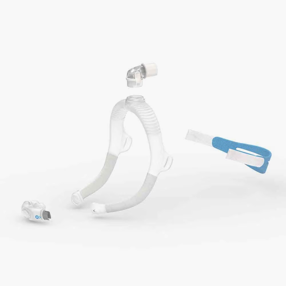 AirFit P30i-masken med näskuddar har en slangkonstruktion som sitter ovanpå huvudet, vilket gör det lättare att sova i vilken ställning som helst. Näskuddarna har en QuietAir™-ventil för en lugn och behaglig sovmiljö. Njut av friheten att röra dig i sömnen och komma nära din sängkamrat. I detta set ingår mjukdelar i storlek Small och Medium.