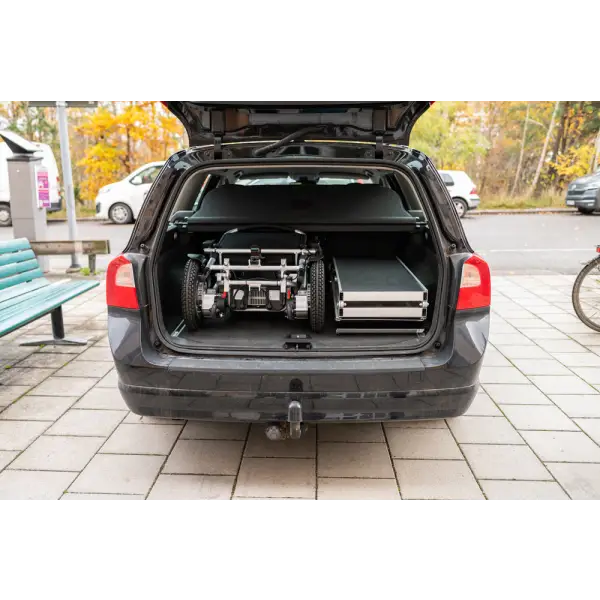 Eloflex lastramper underlättar i och urlastning av våra hopfällbara elrullstolar. Med ramperna, som är specialgjorda för Eloflex, kan du enkelt lasta in din elrullstol i bilen utan att behöva lyfta den. Du kör helt enkelt in stolen i bilen på ramperna med hjälp av stolens joystick