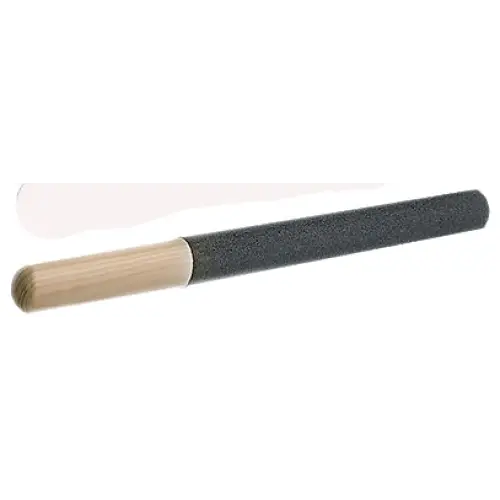 Fotfilar på ett 30 cm långt skaft. Den halvrunda formen gör det lättar att komma åt. Den finkorniga filen har en kornstorlek på 70. På den plana sidan är det två lager slipduk för att förlänga livslängden. Tål varmvatten upp till 70°