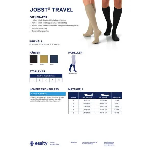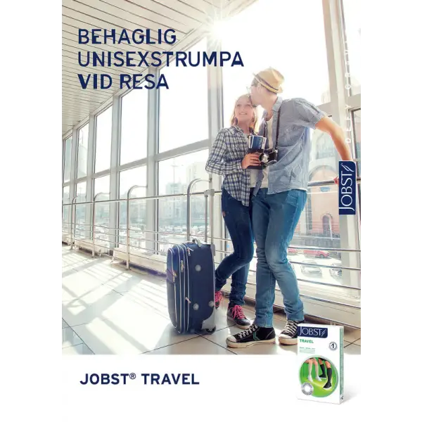 Hjälper till att förhindra djup ventrombos under resorAtt sitta längre stunder ombord på ett flygplan, tåg, buss eller i bil kan leda till cirkulatoriska problem. JOBST Travel strumpor främjar god benhälsa vid långa perioder av inaktivitet.