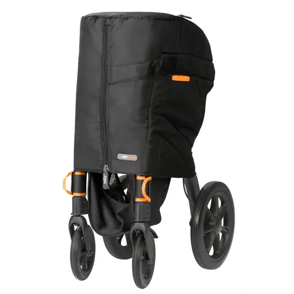 När den är hopfälld är både rullatorn och rullstolspaketet skyddade i det kompakta skyddet.