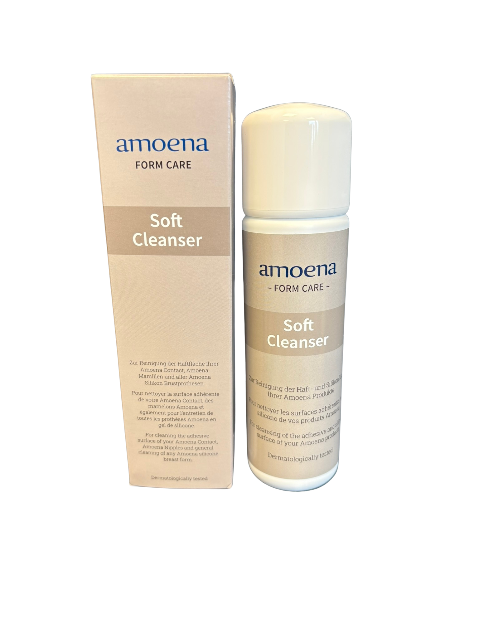 Amoena Soft Cleanser är speciellt utvecklad för att rengöra Amoena Contact-bröstproteser utan att skada den självhäftande ytan. Den innehåller inga oljebaserade ämnen och hjälper därför till att bevara protesens vidhäftningsförmåga. Produkten kan även användas för daglig rengöring av icke-vidhäftande bröstproteser.