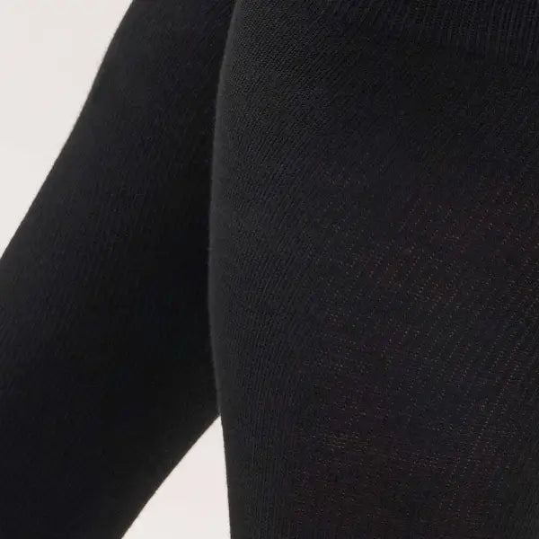 Hög komfort och elegant look säkerställs! Stickningens vävnad består av tre lager som ger en sandwicheffekt: på insidan finns polyamid- och elastantråd, medan det på utsidan och insidan, i kontakt med huden, finns bambutråd som ger en behaglig känsla av att hela strumpan är gjord av bambutråd.