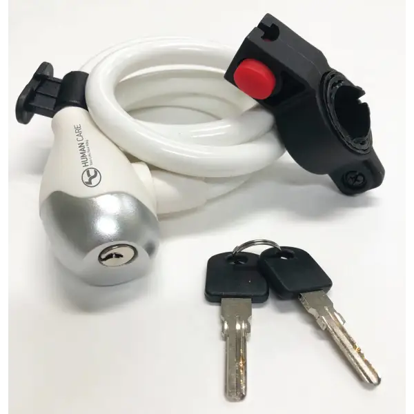 Låset kan du fästa på din rollator och med ett enkelt knapptryck kan du ta bort och fästa din rollator där du behöver för att sedan enkelt ha det med dig på rollatorn när du går.